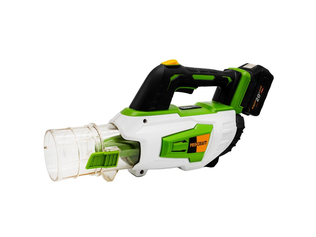Lehký a kompaktní akumulátorový fukar Procraft PB20. Doporučená baterie Procraft 20V 4Ah nebo 8Ah Li-ion (není součástí balení).