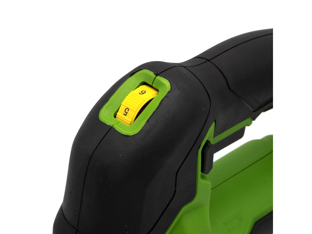 - Výkon a rychlost: Regulace otáček 800-3200/min a solidní prořez do dřeva až 100 mm.