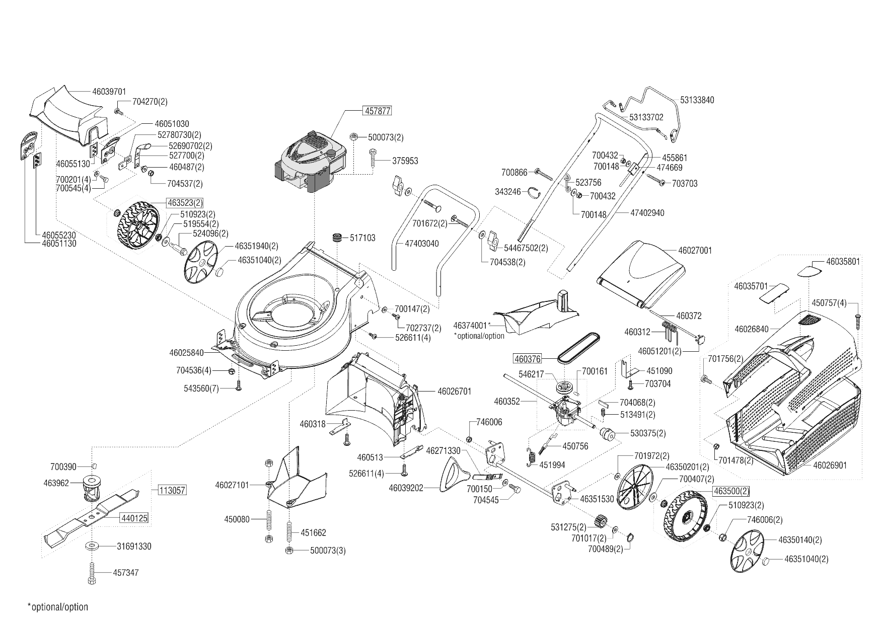 | Nastavení výšky sečení: | jednotlivá kola - 7 poloh |