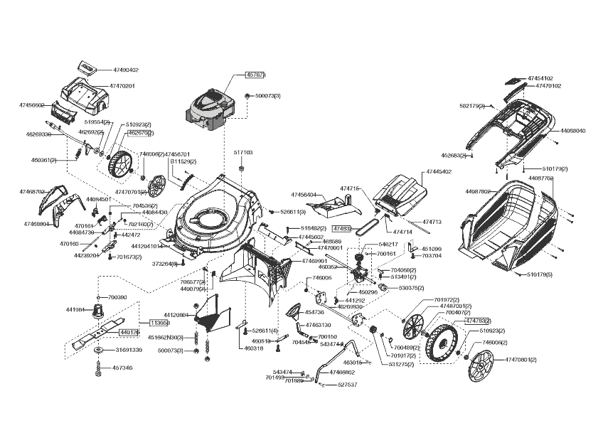 - Funkce 4v1: Sečení, sběr (70 l koš s ukazatelem), mulčování a boční výhoz.