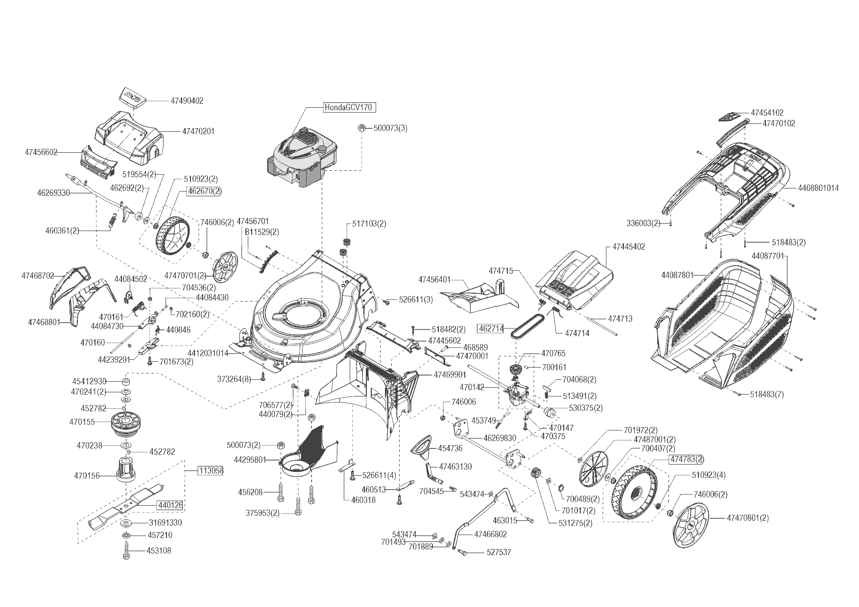 - Tělo z ocelového plechu s technologií MaxAirflow pro nejlepší vlastnosti sečení a sběru posekané trávy