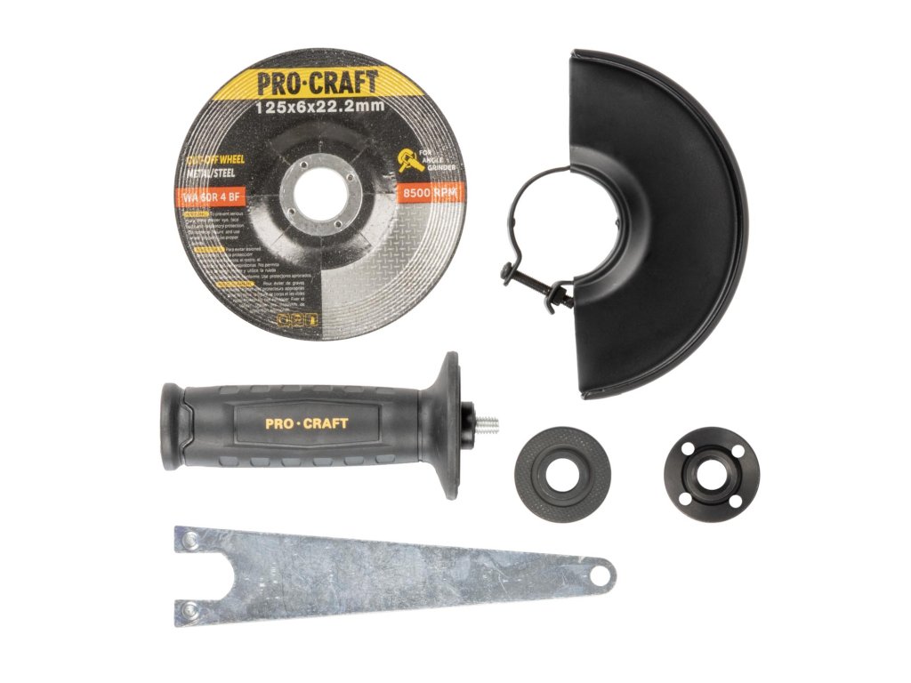 Bruska úhlová Procraft PW2700 Brushless Součástí balení: montážní klíč Příkon: 1700W bezuhlíkový motor Průměr kotouče: 125mm Otáčky: 11000min, regulace otáček Hmotnost: 1,8kg