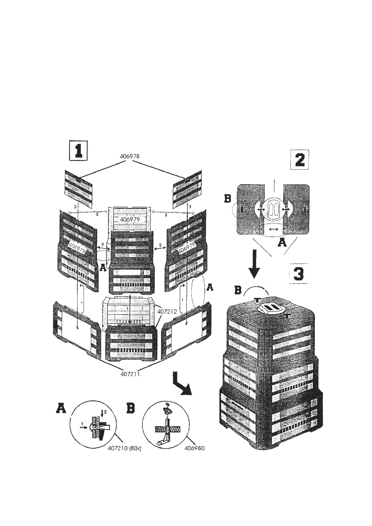 Technické detaily kompostéru AL-KO K390 Kompostér se skládá z recyklovaného materiálu o objemu 390 l. Termokompostér o hmotnosti 13,2 kg má základní plochu 660x660 mm a výšku 1100 mm a má dva plnící otvory a vyjímací klapku.
