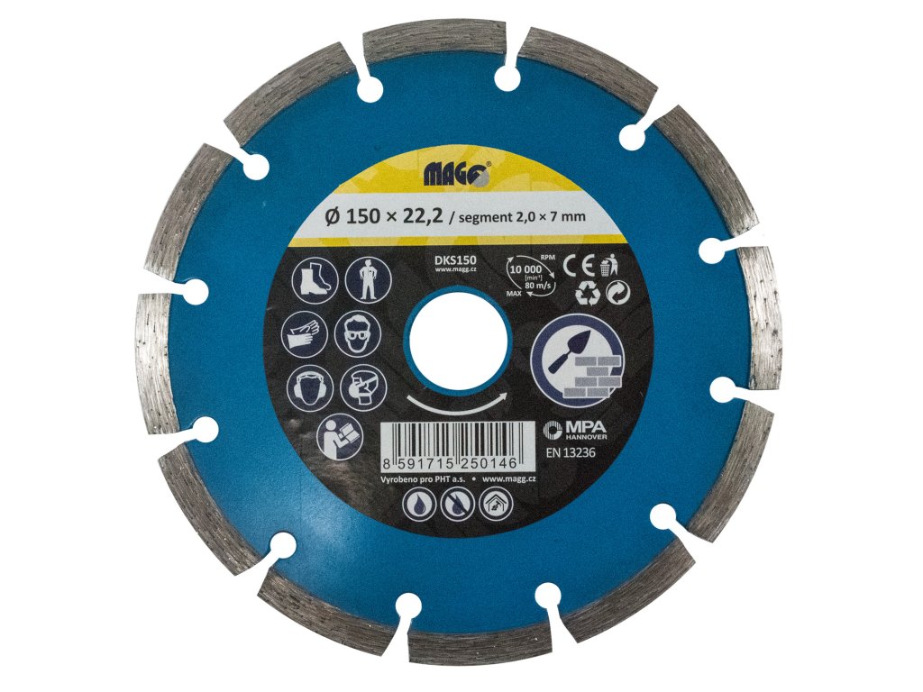 Segmentový diamantový kotouč pro suché a mokré řezání stavebních materiálů. Vysoký obsah diamantového prachu.