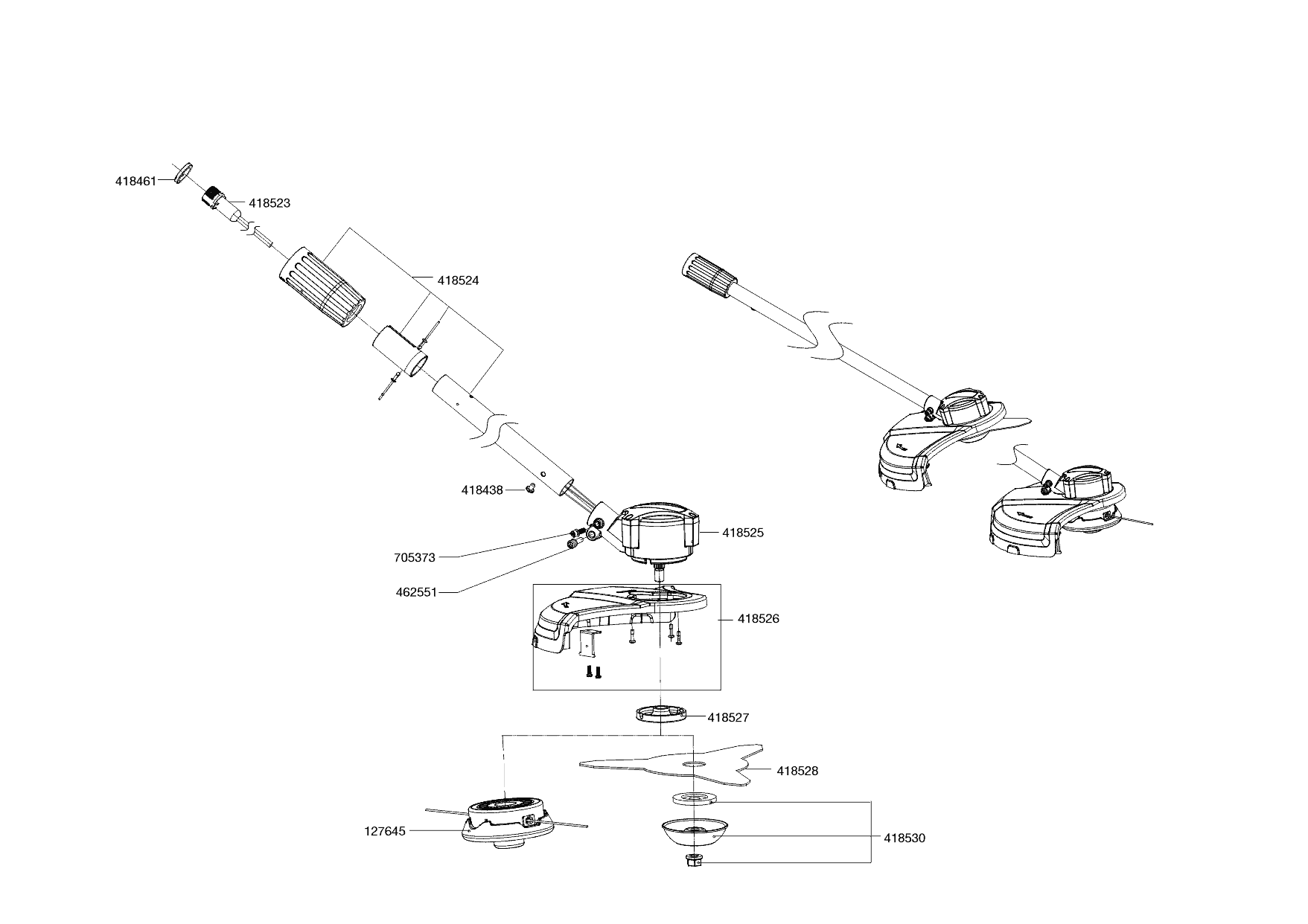 ✓ Strunová hlava (záběr 36 cm) + 3-zubý nůž (záběr 25.5 cm)