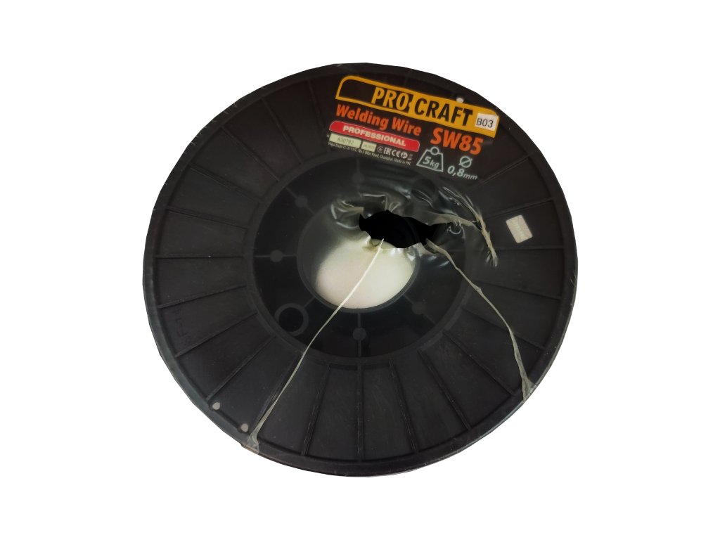 Svařovací drát Procraft SW85. Hmotnost 5kg. Průměr 0,8mm plastová cívka G3Si1