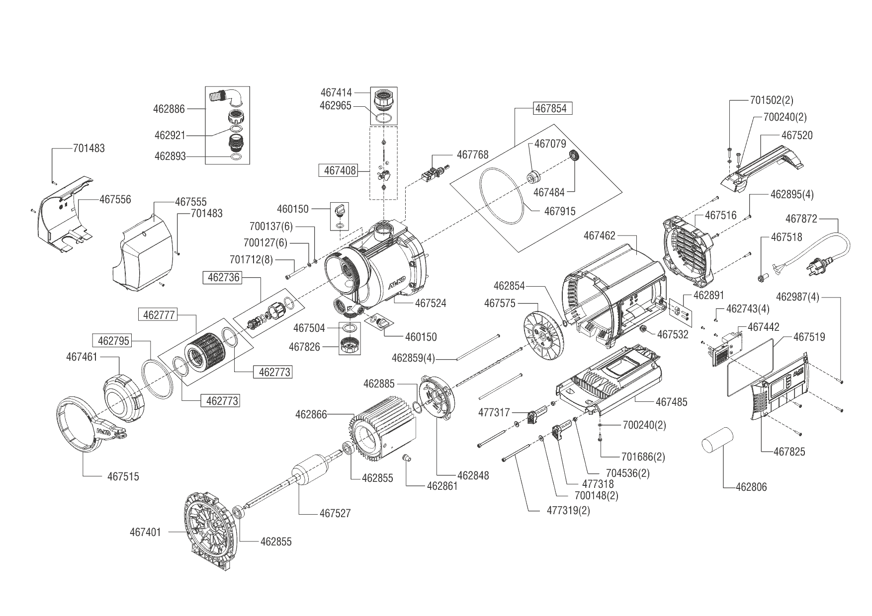 - Kompletní výbava s vestavěným manometrem, tlakovým spínačem a přívodním kabelem.